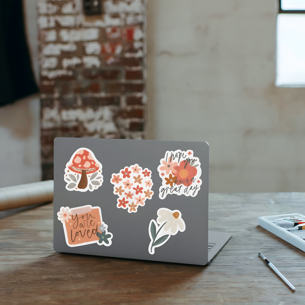 Add a pop of color to any space with these cute flower printable stickers! I drew these with a sketch brush in a muted color palette for an organic, cottagecore vibe. The stickers come with a white border for easy print and cut! :)